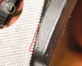 Here are microscope shots of both sides of the material. See if you can tell which side is the "downstream" side (away from the grind). You'll need to click the pictures to see them in detail. Note: the color is an artifact of the micrographic exposure using a standard digital camera; the filter was unused and is actually quite white.